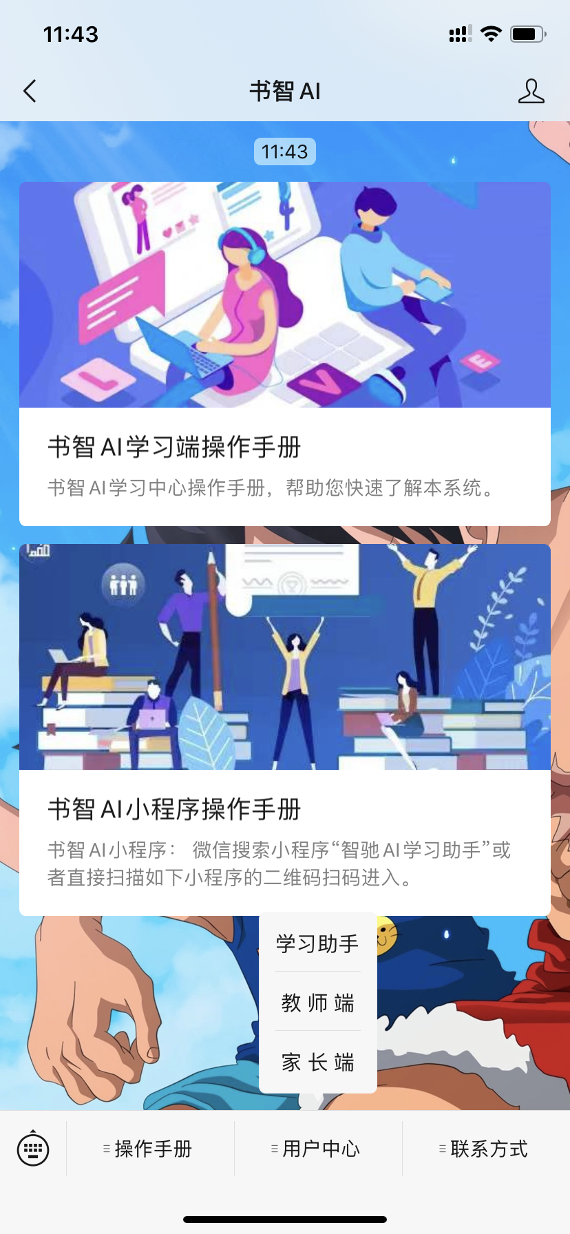 以上內容為微信公眾號家長端操作流程,如有任何問題可在書智AI網站進行問題反饋或者來電進行溝通。
