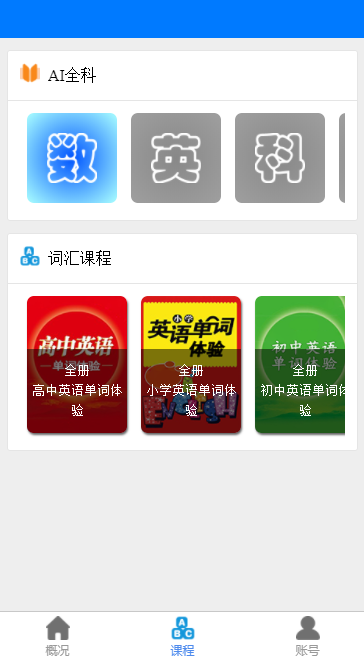 2.1 點擊AI全科的高亮科目,可查看該科目已開通課程。